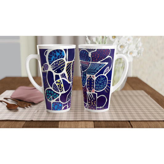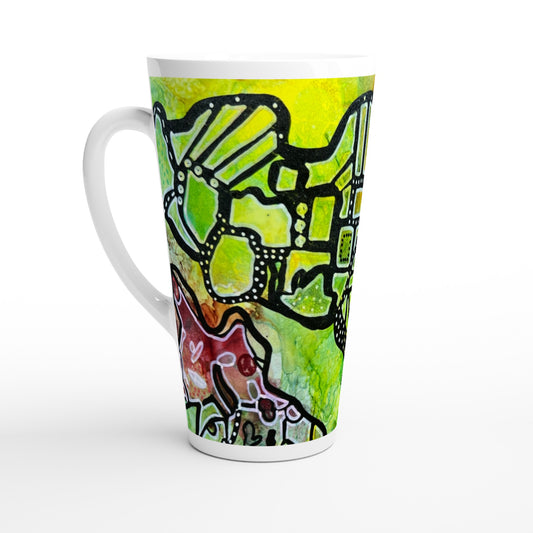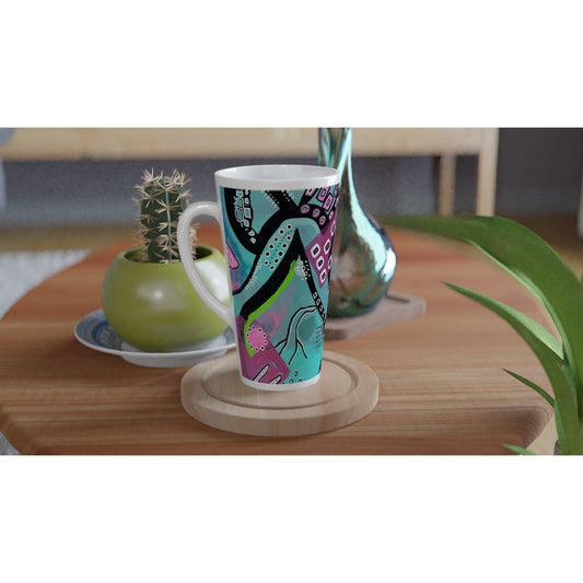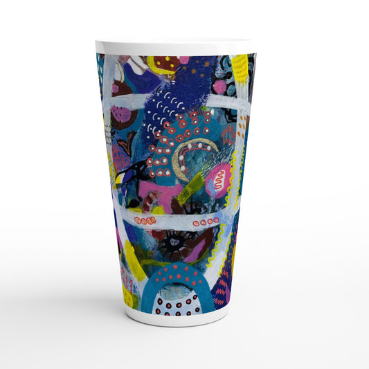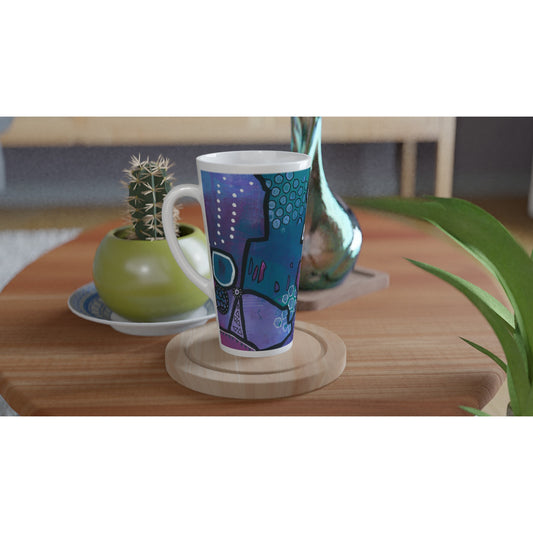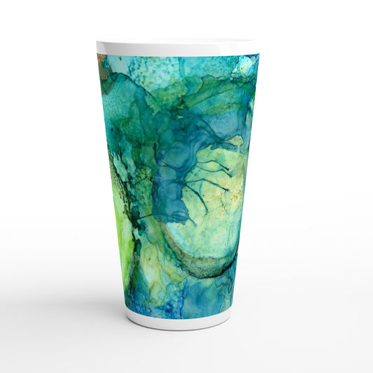 White Latte 17oz Ceramic Mug - Ocean Blues and Greens