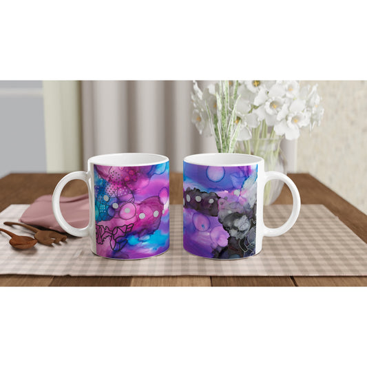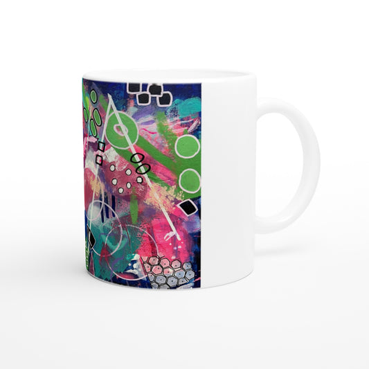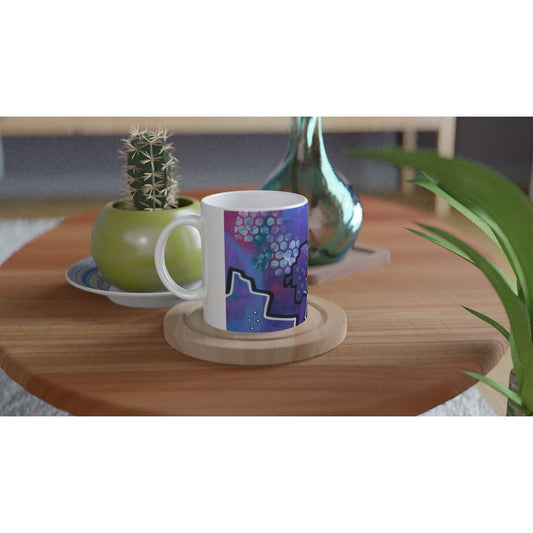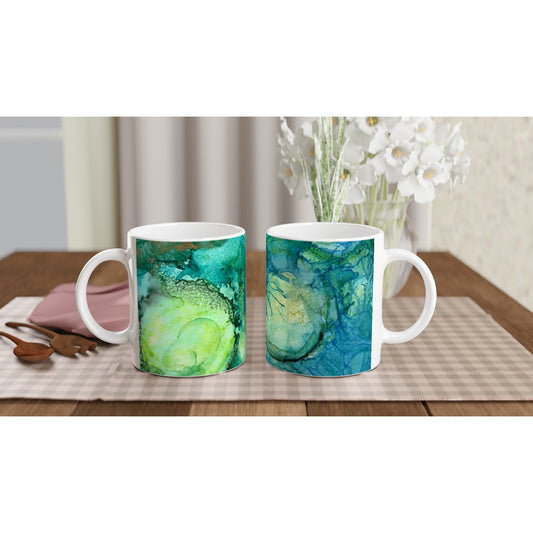 White 11oz Ceramic Mug - Ocean Blues and Greens